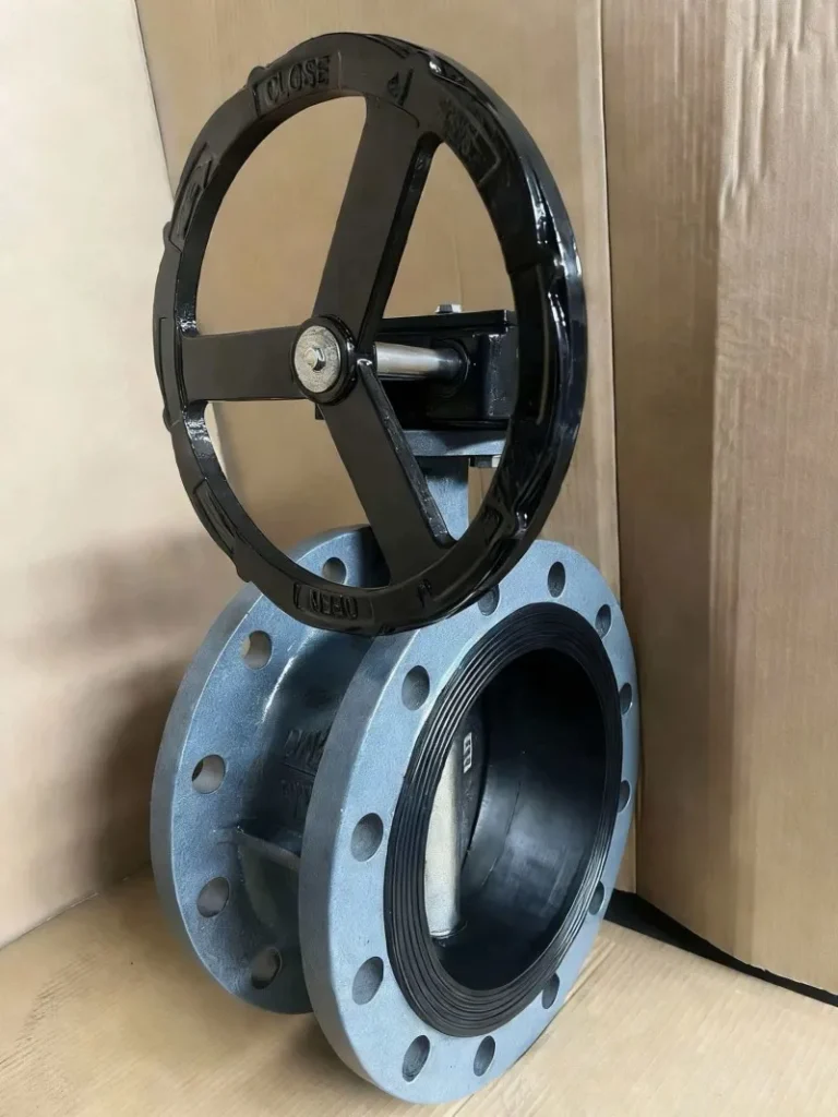 Дроссельный клапан с фланцем турбины из литой стали D341X-16C - это переключающий и регулирующий клапан, обычно используемый в промышленных трубопроводных системах. Он в основном состоит из корпуса клапана из литой стали (материал WCB), дроссельной заслонки, седла клапана с резиновым уплотнением, механизма червячного привода турбины и фланцевого соединения.
